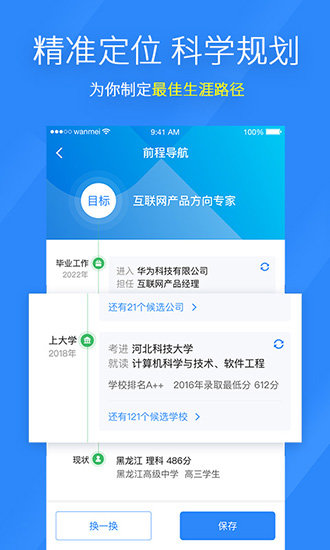 拥有与招生办同步的3000万条考生录取数据;数据涵盖全国2012所院校,1214个专业,4000万个毕业生就业去向;是新浪独家就业大数据及百度高校数据提供方 。六位中美大数据科学家通过精准算法给你靠谱的志愿分析。