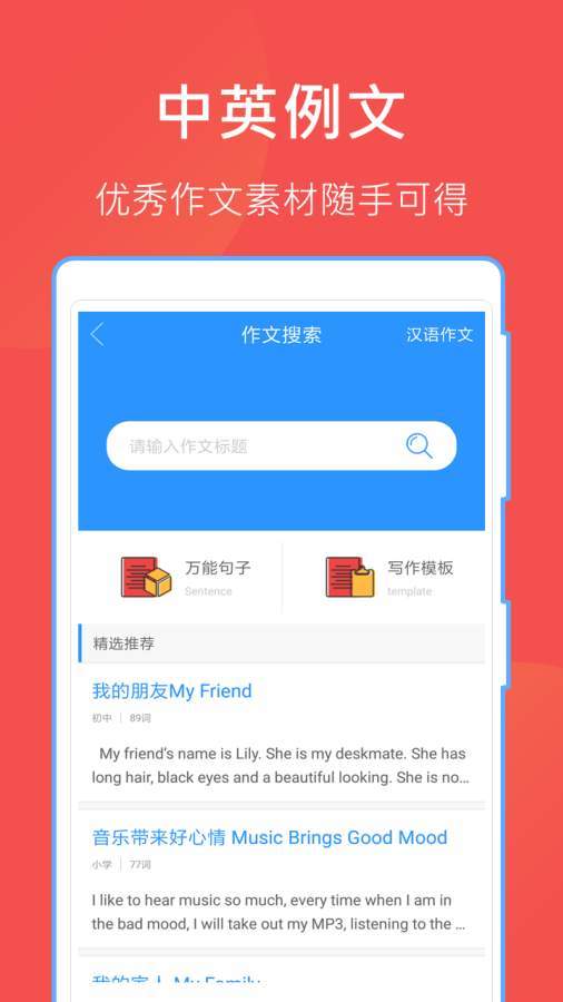 搜作文、听写助手、背诵助手:覆盖全国多版本语文教材,精选千万份作文优美句子赏析,丰富孩子积累,流畅写作不犯难。