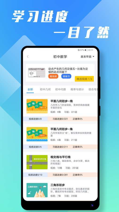 视频内容以新颖的动画、人文的讲解、多面的规划,让学生熟练掌握解题方法和技能,提高学生对考试的参与意识,提高初中升学率,让学生取得更好的成绩,重点中学不是梦