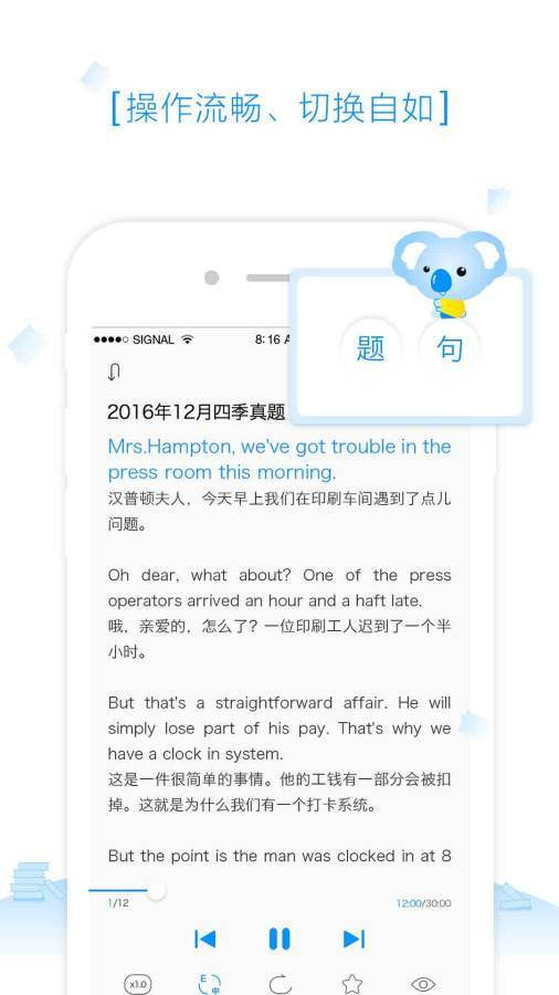 3、软件支持全文听、单句听,让你听到真切,越听越有效。