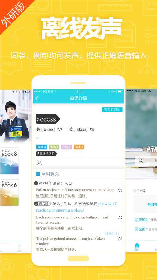 超大型容积,真人版线下发音:5676个百度词条装有英音与美音诵读,15979个例句完成真人版线下诵读,无延迟时间。