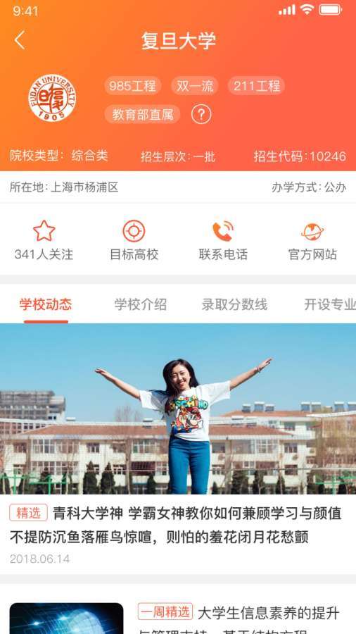 优彼致愿是一个为广大学生准备的志愿软件,不仅为你捕捉到学校里的动态还有各大学校的分数线,让你更好的了解大学,早日上到心仪的学校去。