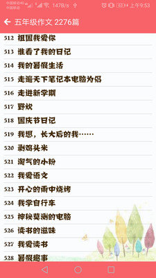 提供了各类题材作文,同时还提供了写作素材(包括写人、写事、写景、状物等)。