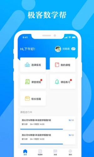 1.在线报名:想要续报极客数学帮课程,却因为工作繁忙无法抽身前往校区报名,极客数学帮强大的在线功能,让家长无需出门一步,便能一键搞定课程查询、报名选座及线上缴费,随时随地为孩子选择更适合的老师与班级。