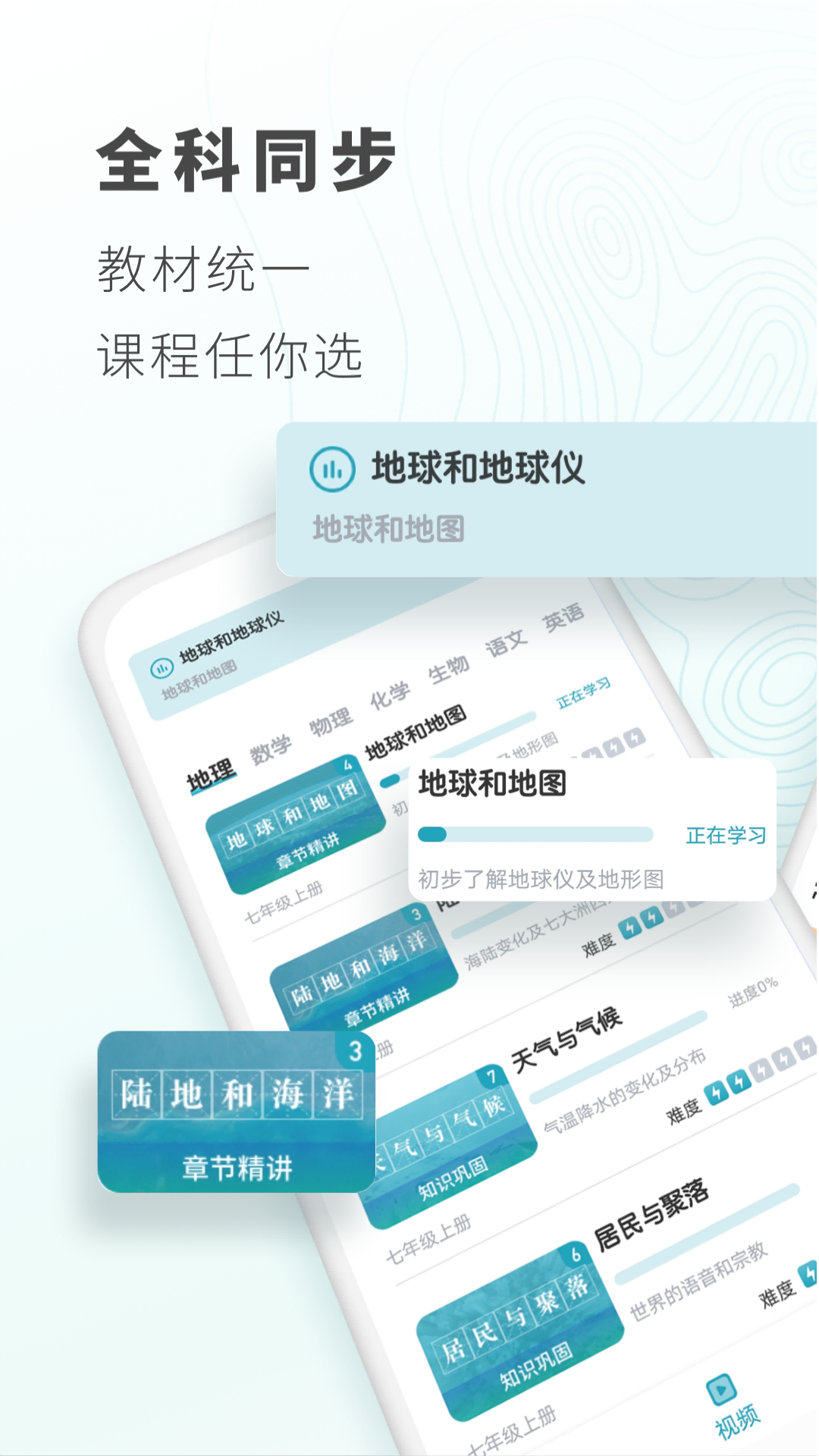 【筛选名师高分教学视频】有效针对初中地理各知识点,同步课本章节内容,对各章节详细全面讲解,提供高清视频解析,随时随地带上耳机就可开启学习模式,让趣味学习充实你的复习时光。