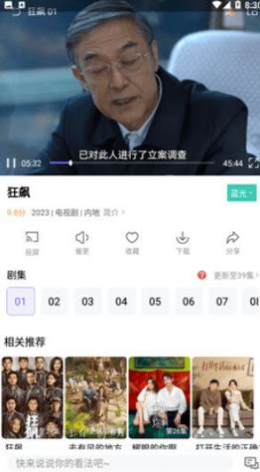 3、更多辅助播放功能,可实现任意拖动进度条、双速播放、超高画质选择等,同时支持屏幕播放;