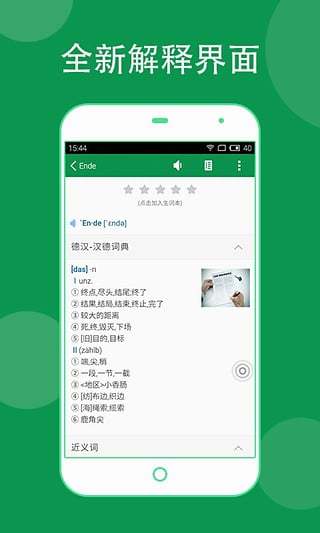 1、拥有与桌面版相同容量的词库。包括了德汉-汉德词典、德语近义词词典、德语专业词典以及德德、德英等大量词库。