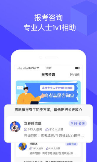专业智能的高考志愿填报辅助应用。好志愿app为各位填报志愿提供更多的帮助,这里有全国几千所院校,各位想要填报什么院校自己去搜索吧,好志愿里面学校的信息以及专业等介绍很详细,各位可以放心去搜索,好志愿还有志愿填报帮助,分类很详细,支持预测功能,为你预测录取的情况。