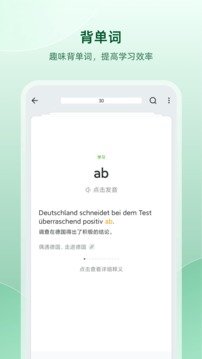 拥有与桌面版相同容量的词库。包括了德汉-汉德词典、德语近义词词典、德语专业词典以及德德、德英等大量词库;