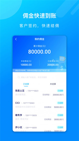 注册成为楼盘的经纪人,向朋友推广楼盘即可获得高额的佣金奖励,能够快速的到账