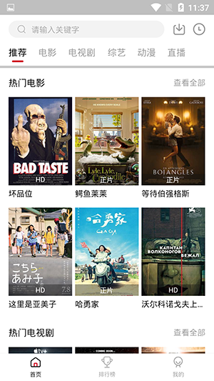 2、资源丰富:超全的影视库,可观影看剧追番看电视直播,不用付费,简单便捷