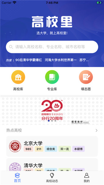 高校里app一款非常不错的志愿报考软件,软件中功能都是非常齐全的,可以让用户们直接查看院校信息,方便做出选择,更好的报考志愿,快来试试吧。