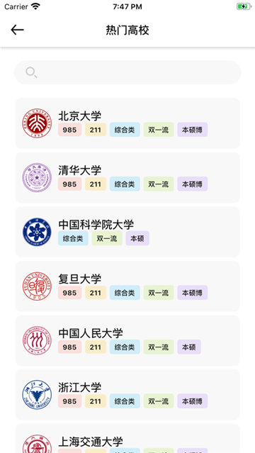 2.在首页汇总一些热门高校的综合排行相关的信息都会提供给你直接参考,让用户能直接查询;