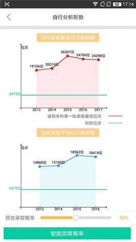4、根据专业招生分数和录取位置,分析考生的录取概率。