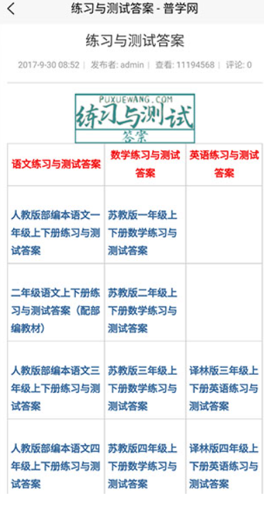 每天都有各种不同的考题答案进行更新,根据不同的年级进行课程分类;
