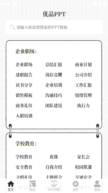 1、进入软件,你能够在首页上方点击本人想要的ppt应用场景