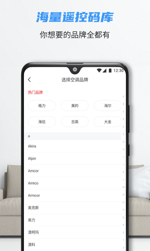可帮助用户连接不同品牌的空调设备,随时通过手机进行智能控制;