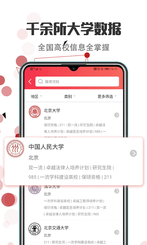 1、数据查询,使正式考试机构的招生数据同步,全国2800多所高校也可以随意查到;