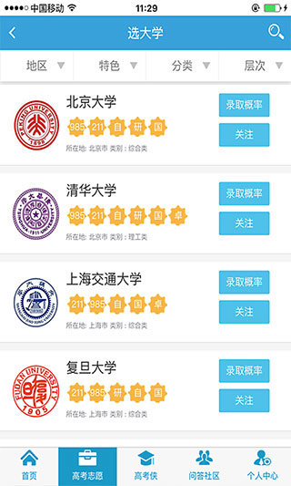 【数据丰富】高考圈涵盖全国近2800多所院校近五年的招生录取数据信息,拥有上亿级数据作为底层基础,依托北京大学、清华大学、北京师范大学等团队的高新科技实力,开发出一套拥有严密逻辑、精准算法、贴合中国高考志愿填报政策的志愿填报工具。