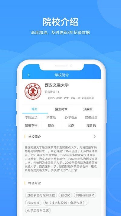【院校大全】可以查询2700多所院校历年录取分数线、院校详情、专业简介。