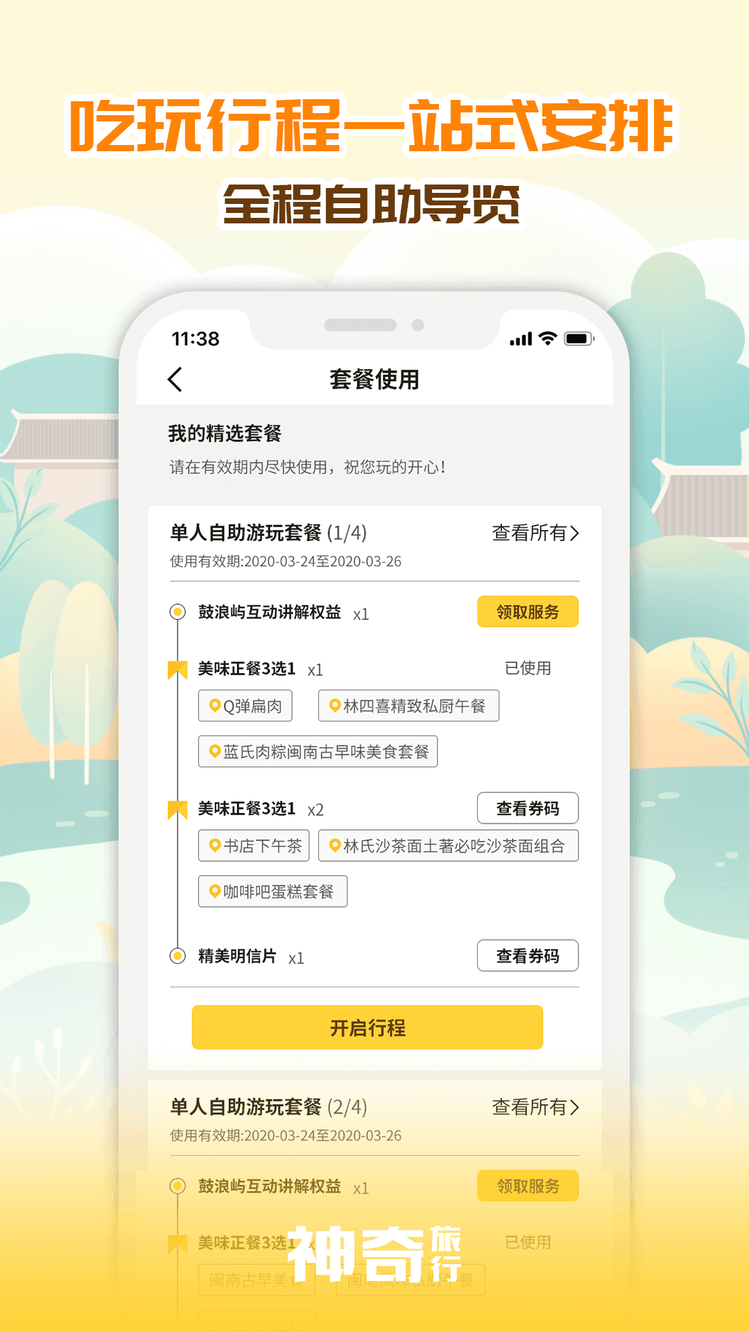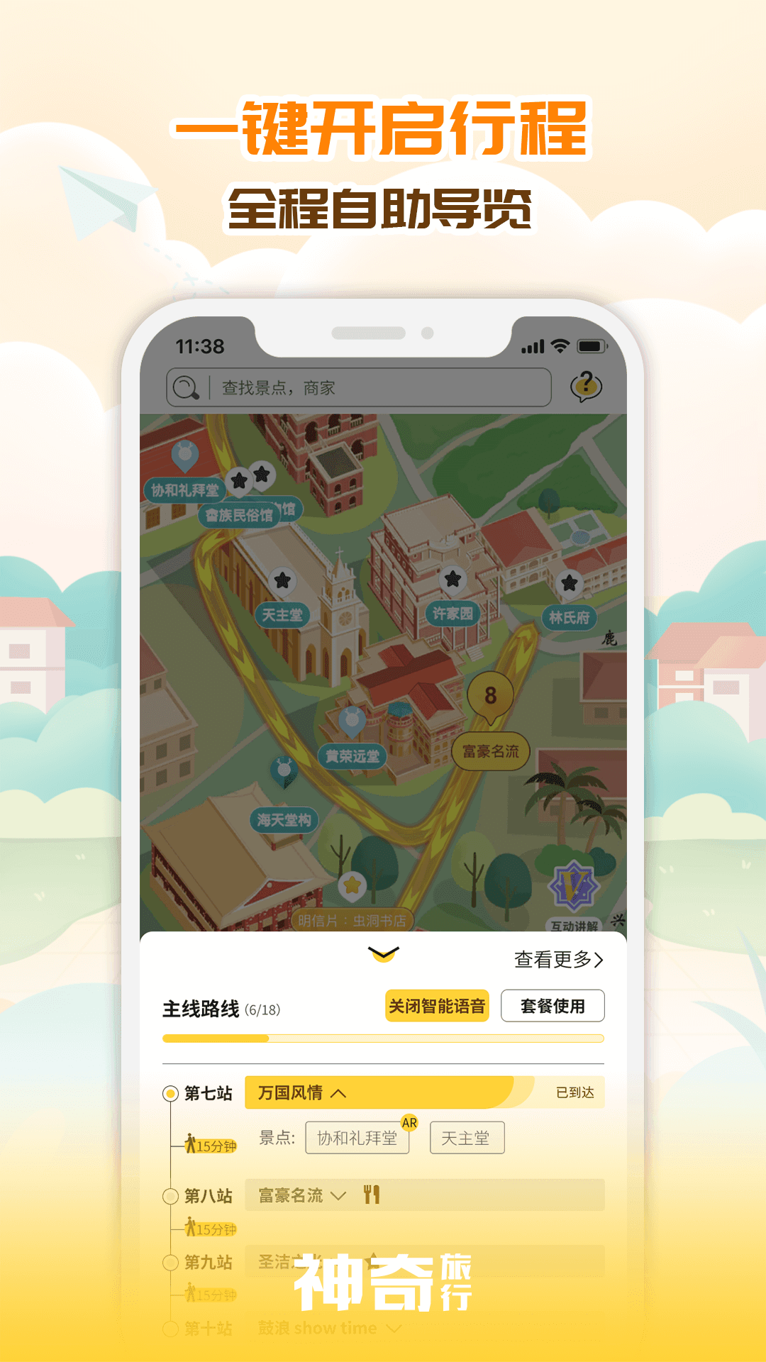 神奇旅行app,有着最新的旅游攻略,用户们可以自由的选择喜欢的景点进行路线规划,系统还会智能的推送附近的景点、美食、文化等信息,住宿和订票服务都能抢先使用,让旅游更加舒适。