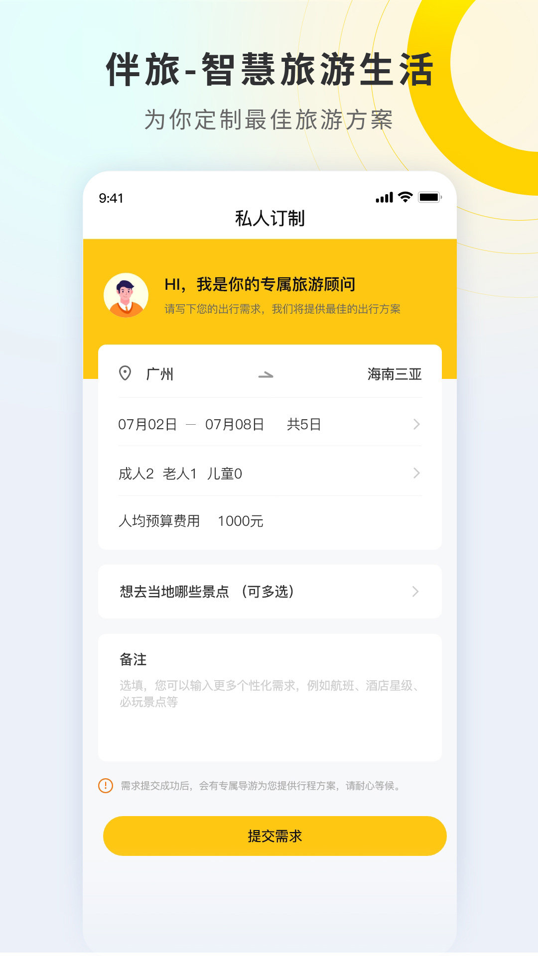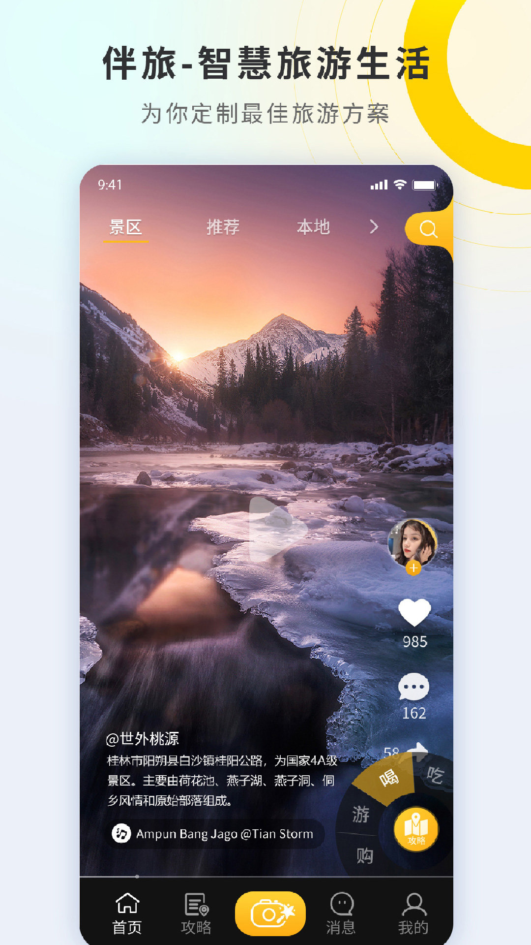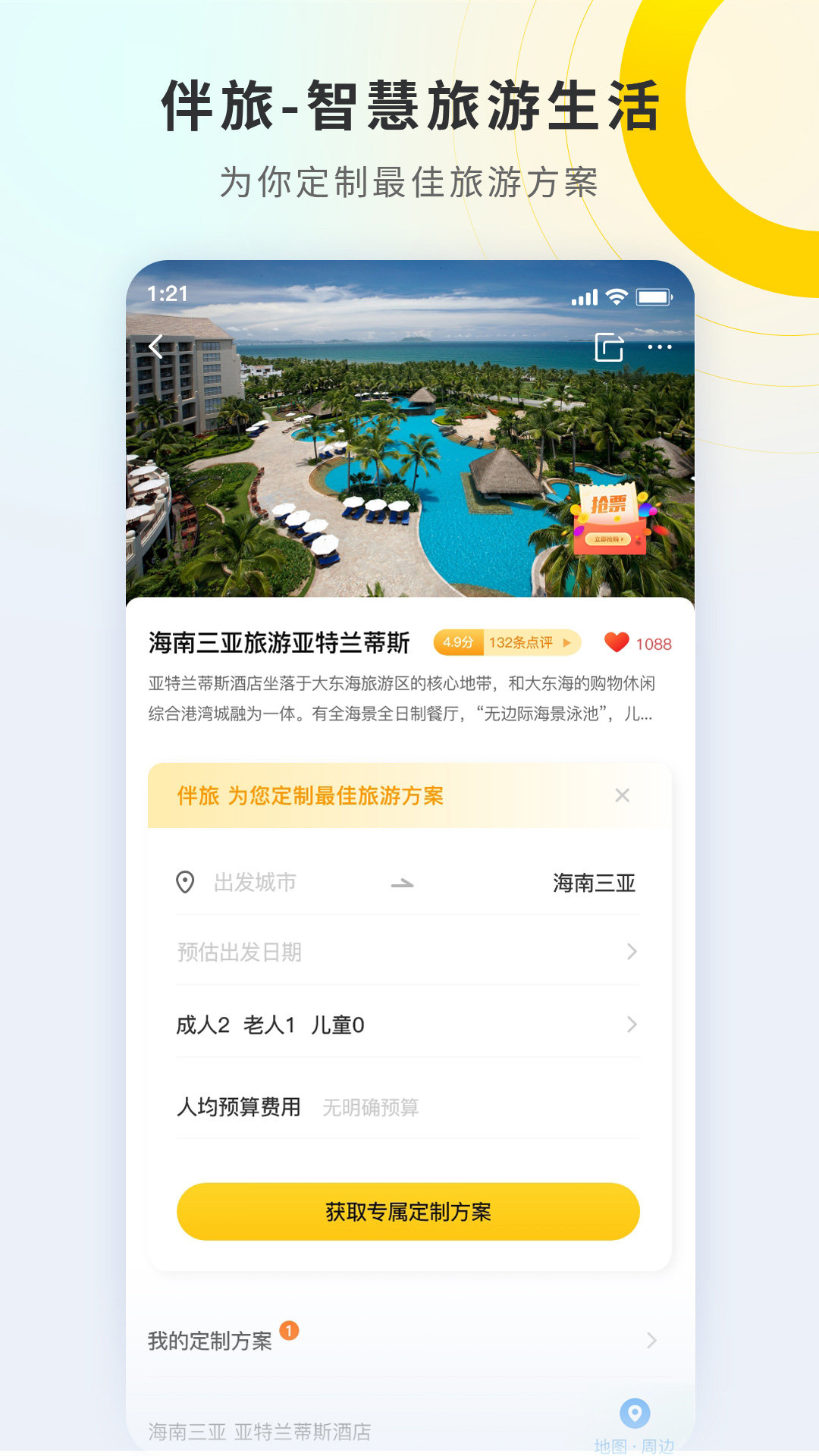 伴旅2023,最新最热门的旅游APP。有着超级丰富的旅游攻略,各个城市的热门景点信息都能找到,用户们可以自由的定制旅游线路、往返车票、门票、住宿等等服务,和好友一起旅游更加舒适!