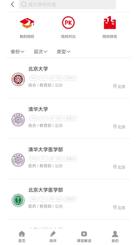 1、提供按照省份、学校类型等关键字筛选,随时可以根据自己的目标定位高校