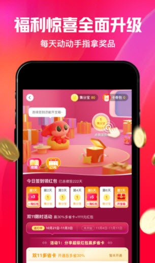 福利惊喜全面升级,购物、签到领金币,每天动动手指就可以免费拿奖品,优质好货带回家,快来体验吧。