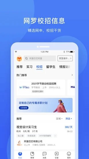 3、有求职需求的大学生可以选择这款app!它将带来更多高质量的就业岗位。