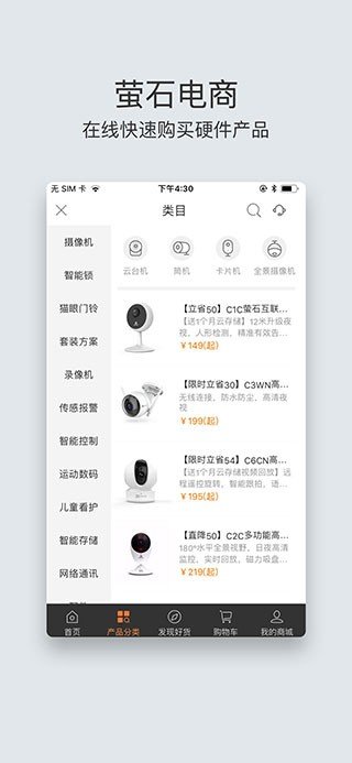 设备相关:萤石云app设备添加/管理、预览实时画面、远程配置设备、云存储开通;