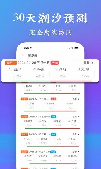 在线内置全国潮汐站,多日潮汐预报更准确。