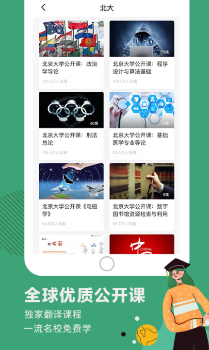 最大最全的课程平台,国内外顶尖学府的海量名师名课,覆盖文学、历史、经济、计算机等数十个领域。