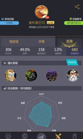 1、查战绩:随时随地查战绩,炫起来更方便,你的牛×数据怎么能只停留在电脑上
