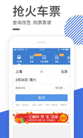 智行火车票最新版是一款非常棒的手机购票软件,在软件中用户可以体验到方便的购票模式,而且还可以双引擎抢票,并且可以全自动进行余票监控,轻轻松松就可以订到你需要的出行票,喜欢的用户快来下载体验吧。