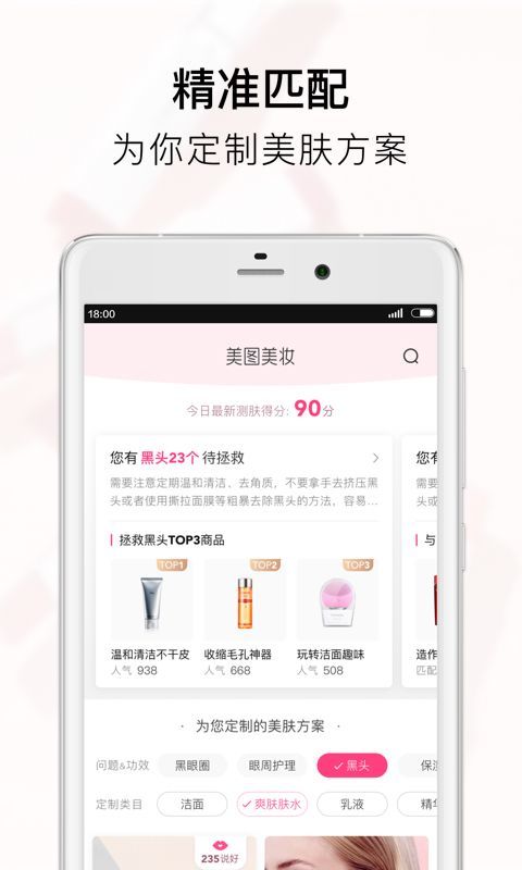 美图美妆app这里新人注册有超多的福利,这里每天都会有很多场美妆好物限量抢购活动,不是会员的用户也可以享受一次会员的待遇,这里不管用户是有黑头还是痘痘,黑眼圈都可以为你推送合适你的资源,保护肌肤的统统给你,快来下载体验吧。