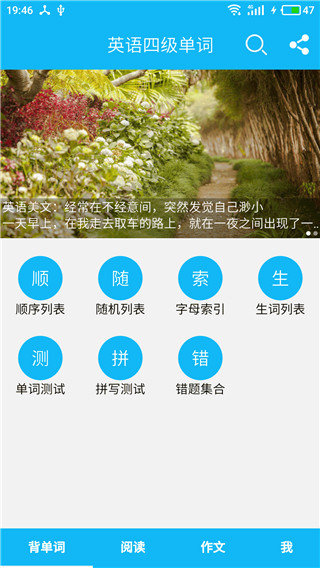 英语四级单词官方版让你解锁各种全新的英语学习方式,用户可以在这里通过视觉和听觉的结合,快速掌握各种英语词汇。生动的动画演义,听歌学习英语单词,感受英语作为语言创造出来的各种艺术的魅力,感兴趣的小伙伴,点击下载感受吧。