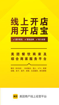 美团开店宝商户版一款功能强大的商家自助开店软件,用户可以轻松便捷的开店通过软件,开启线上的管理,查看自己近期的营业额,了解不足帮助自己更好的经营店面,非常实用。