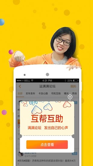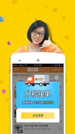 运满满司机版app一款非常好用的物流送货软件,可以很好的帮助各位司机找到理想单源,还有加油优惠政策,帮助司机快乐出行每一天,快来下载体验吧。