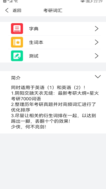 是一款会不断提升同学们英语词汇的软件,需要考研的人们可以下载这款考研英语安卓版行进行词语学习和整理,各种真题这里应有尽有。