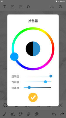 4.点击调色板,可以选择预设的颜色或者通过“调色板”自定义颜色,设置完成后,就可以动动手指,在画布中进行自己的漫画创作了。