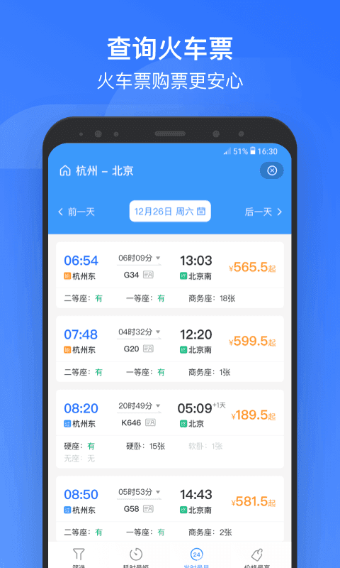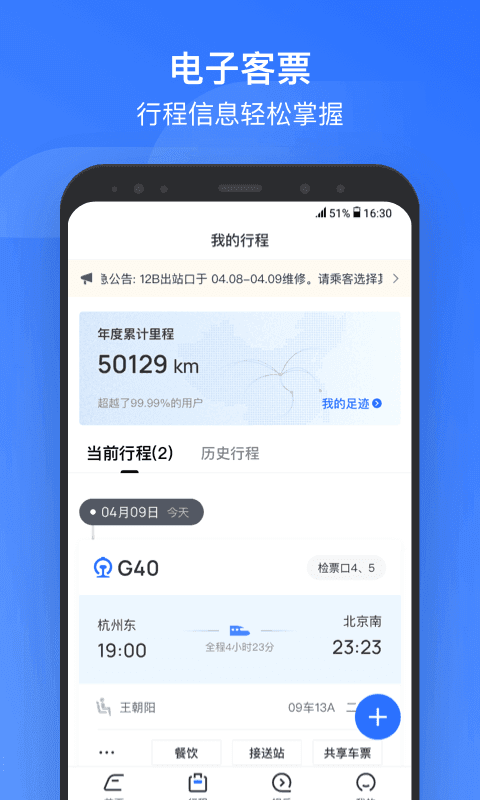 【电子客票】:全方位行程管理,智能同步12306账号行程;