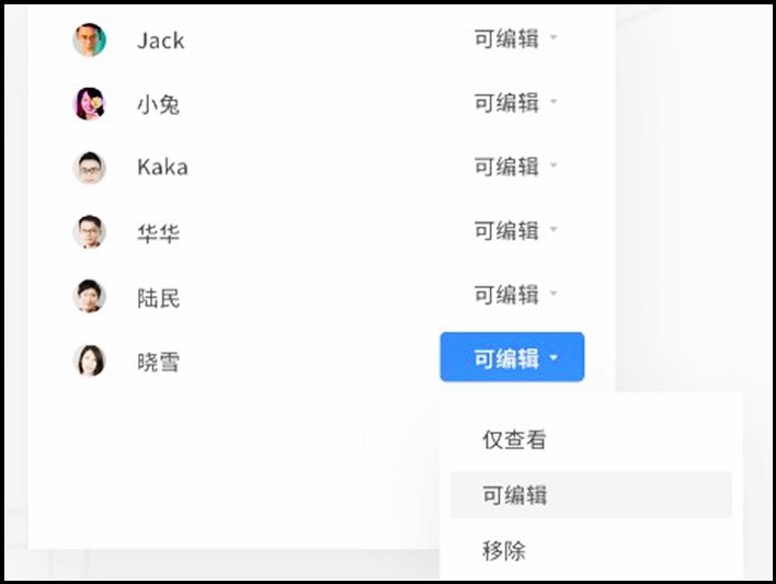 由发起者指定可协作人之外,还可以设置查看/编辑的权限