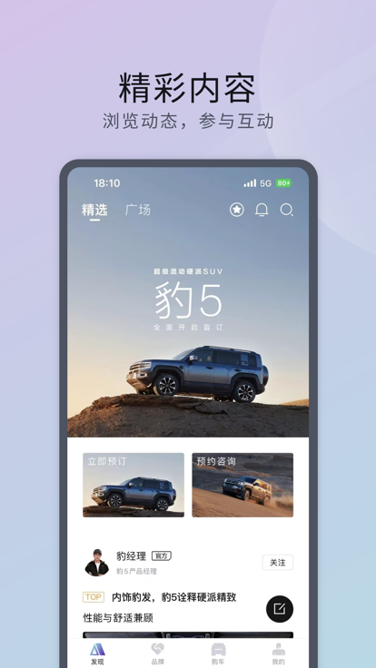 方程豹用户专属交流平台,在发现模块交流新鲜有趣的用车故事,讨论热门话题,参与品牌活动,共享美好生活旅程。