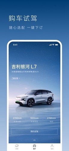 吉利银河是一款专门为大家提供的购车平台,这里为大家展现了最新的车资讯,用户们可以挑选自己喜欢的款式进行试驾,一键订购,让你远程操控着汽车,喜欢的快来这里离下载体验一下吧。