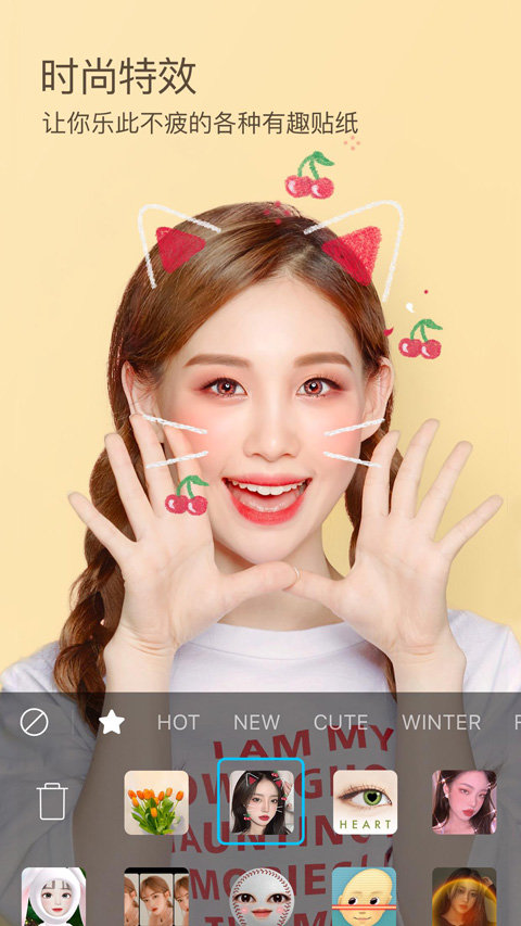 2、利用时尚的增强现实美妆功能,拍摄值得珍藏的自拍照。