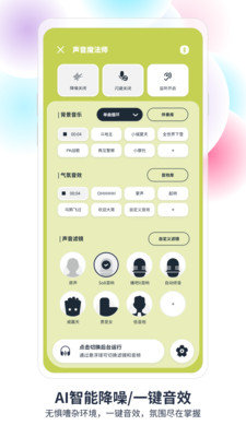 重新定义你的声音,让您的内容分享插上声音的翅膀,声而不凡,魔力无限。一款能兼容市场上绝大部分自媒体创作平台的实时声音滤镜产品,集实时变声美化、气氛音效包、智能降噪于一身的变声调音软件。