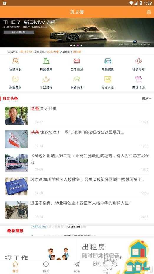 首页每日都会有巩义的新闻、事件等消息,让使用者随时了解当地的最新消息。