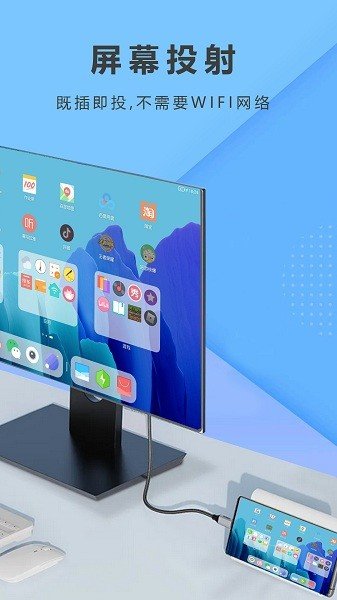 All Play屏幕投影手机是根据有线/无线网络将屏幕投影到电脑里的软件,插进电缆线就可以将手机屏同歩到电脑。