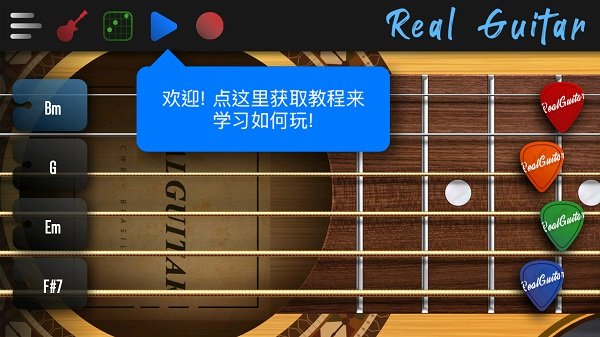 realguitar是一款好用的吉他教学工具,软件内置了吉他模拟工具,并且有着超级详细的教程和示范音乐给大家,让大家能够更快的入手吉他知识,并且学会演奏,喜欢的就赶快下载试试吧。