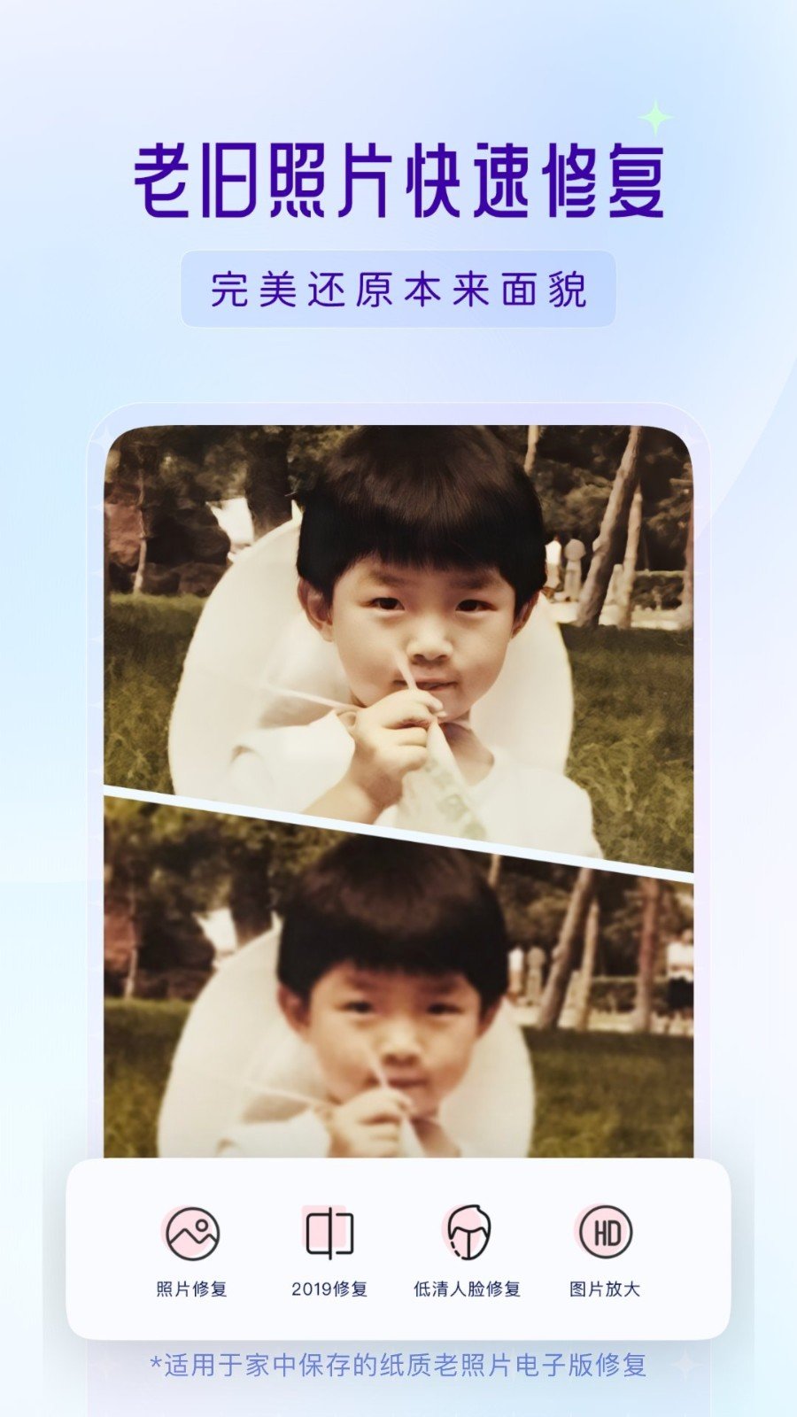 5.操作简单,轻松易上手,只需手指点点即可,快速将老旧照片变成高清.